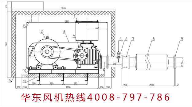 今天華東風機給大家分享的是250型號的羅茨鼓風機圖紙,帶消音房的。